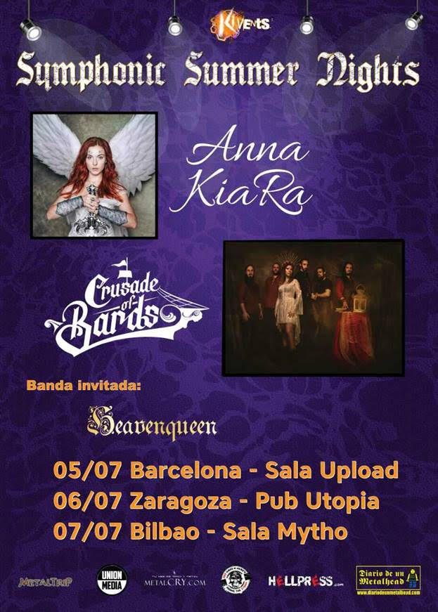 Las fechas de la gira “Symphonic Summer Nights” de Anna KiaRa, con Crusade Of Bars y Heavenqueen son: