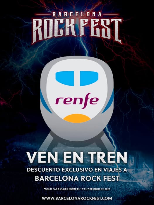 BARCELONA ROCK FEST 2026. Descuentos en RENFE