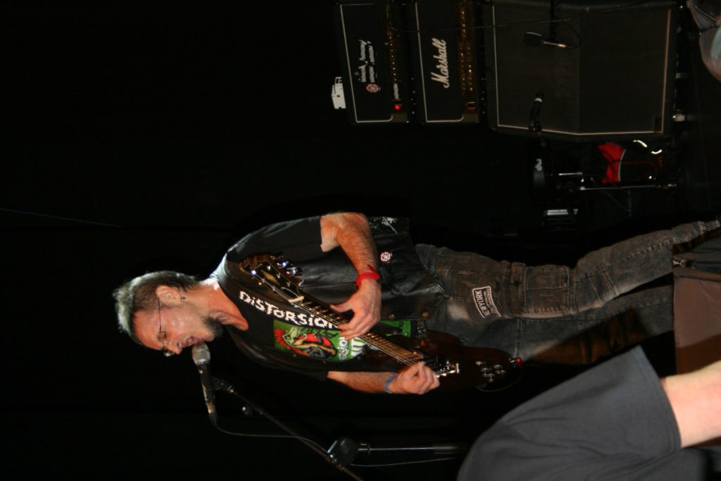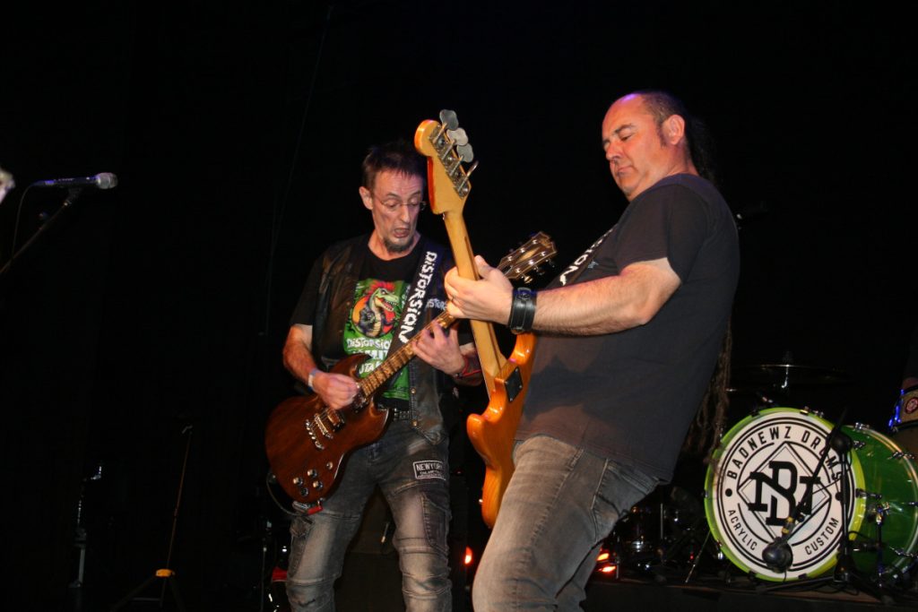 Abrieron puntuales Distorsión, nacidos en 1983 en Barakaldo, y de un estilo ochentero total en lo musical y de diversión y desparrame en sus letras, con su cantante y guitarrista Josu sin parar de bromear en todo el bolo y ejerciendo de cachondo total. Aunque la propuesta es básica, también tienen sus momentos instrumentales más trabajados que solucionaron con soltura, especialmente guitarra y bajo, y siempre demostraron muy buen rollo con el que contagiaron al personal.