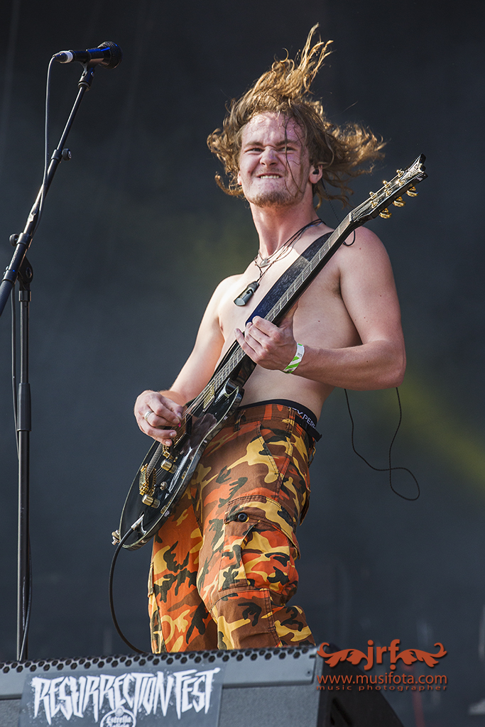 …Parece el comienzo de una serie apocalíptica…(en cierta manera lo es jjjj) y no sabemos si decir,…por fin!!! o,… Guay! Otro día de festi!…Las fuerzas ya están un poco al límite; pero la verdad es que hoy, el cartel tiene cosas atractivas,.., así que volvemos a la carga. Como ya es habitual, el cuartel general estará entre el _Main Stage_ y el _Ritual Stage_…Hoy, lo interesante, para mí (…y el resto de días, la verdad) está aquí. Quizás sea el “plantel” más heavy dentro de la oferta tan variada que nos ofrece el festival. Como el resto de jornadas, hay sugestivas opciones para vivir el último asalto al “Resu” y seguramente cada cual elegirá la que más le atraiga e interese…o incluso irá improvisando sobre la marcha, según vaya desarrollándose el día y dependerá, quizás también, de donde le pille en cada momento…Es sábado y vuelve a lucir el sol. ¿Resaca?…bueno, algo que no pueda remediar un buen desayuno/almuerzo…o como diría alguien,…”un clavo saca otro clavo” y así tendrá excusa para empalmar con la “torrija” del día anterior. Ya estamos entrando y lo primero que nos encontramos es el rock de ARRYTHMIA…para seguir con dos alternativas. CORDURA, si quieres volver atrás o PERPETUAL NIGHT si quieres seguir hacia delante. Me acerco hasta los segundos, ya que después tenemos a “tiro” al siguiente grupo. Death sinfónico asequible que cuenta con la colaboración de Patricia (Celtibeerian),…adelantando una muestra de lo que vendría más tarde. MISIVA. No todo va a ser ”metal”!…grita el cantante. Los asturianos ponen énfasis en su Punk-Rock convencional y urbano, aunque hay que quitarle parte de razón, porque sí,…luego sí fue casi todo “metal”  lo que sonó en el Main (…y cercanías). Lo que venía a continuación era una de las decenas de ejemplos para mostrar el carácter tan ecléctico del festival. Coincidencia en el tiempo TALESIEN y CATHEXIA. Dos agrupaciones con estilos dispares. Mientras Talesien hacen un Heavy Metal tradicional con algún tinte progresivo, Cathexia se adentran en un “Death Metal” añejo llevado a extremos más radicales. Mucho calor. El sol dando de lleno sobre el escenario principal y mientras CELTIBEERIAN revindican la “denominación de origen” de los vinos manchegos a golpes de “Folk Metal”, MORGEN tocan en el _Chaos_…Vamos a hacer un poco de ruido!!!…Gritan STRIKEBACK. Ya se hicieron con el título de ganadores de la “Wacken Metal Battle” el año pasado. Desde A Coruña, Trash metal de la vieja escuela con sangre joven, que  después de nueve años desde su primera actuación por estos lares, volvían a Viveiro. En el _Desert_ podías ver a SYBERIA.  CLOSE TO THE SKY (…fueron los ganadores del “Band Contest” en 2017) empiezan cinco minutos antes que ALIEN WEAPONRY que son un jovencísimo trio de Nueva Zelanda que parecen sacados de una serie televisiva de “surferos pijitos”. Mezclan el groove y el trash con tintes étnicos y envuelven la actuación en una atmósfera trival cantando en Maorí. Después de su actuación del “festi”, han girado por nuestro país.